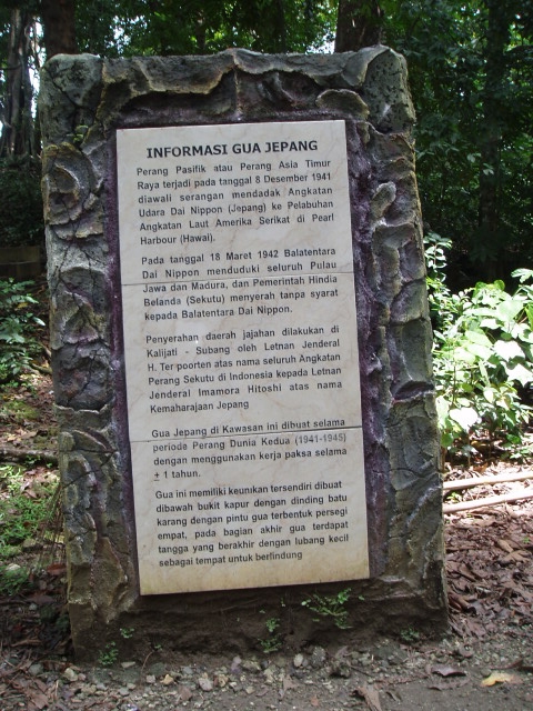 Sejumlah goa buatan diyakini sebagai goa-goa peninggalan Jepang, yang dibangun oleh tentara Jepang saat perang dunia II untuk digunakan sebagai bunker persembunyian. Saya ingin memasuki salah satu goa buatanpeninggalan Jepang ini namun urung karena rombongan takut pada kondisi gua yang tertutup pepohonan dan tampak gelap dilihat dari luar.